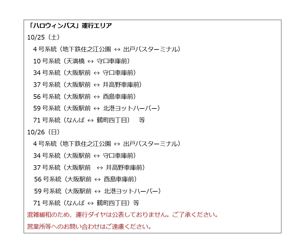 大阪シティバスでは、2025年10月23日(木)~26日(日)の期間中、地域の保育園児や小学生が制作してくれたハロウィンの装飾を車内にデコレーションした「ハロウィンバス」が順次運行します。