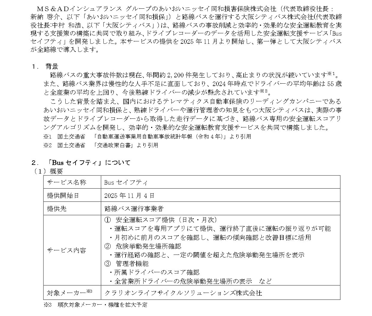 路線バス向けテレマティクスサービス「Busセイフティ」の共同開発について