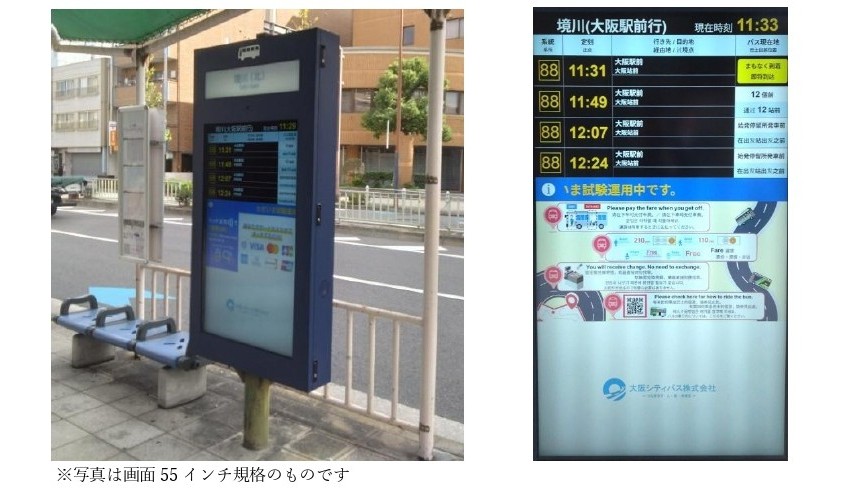 大阪シティバスでは、2025年11月からバス停留所にデジタルサイネージ型標識(サイネージ付きバス停)を順次導入いたします。2026年度末までに300か所のバス停留所に導入予定です。