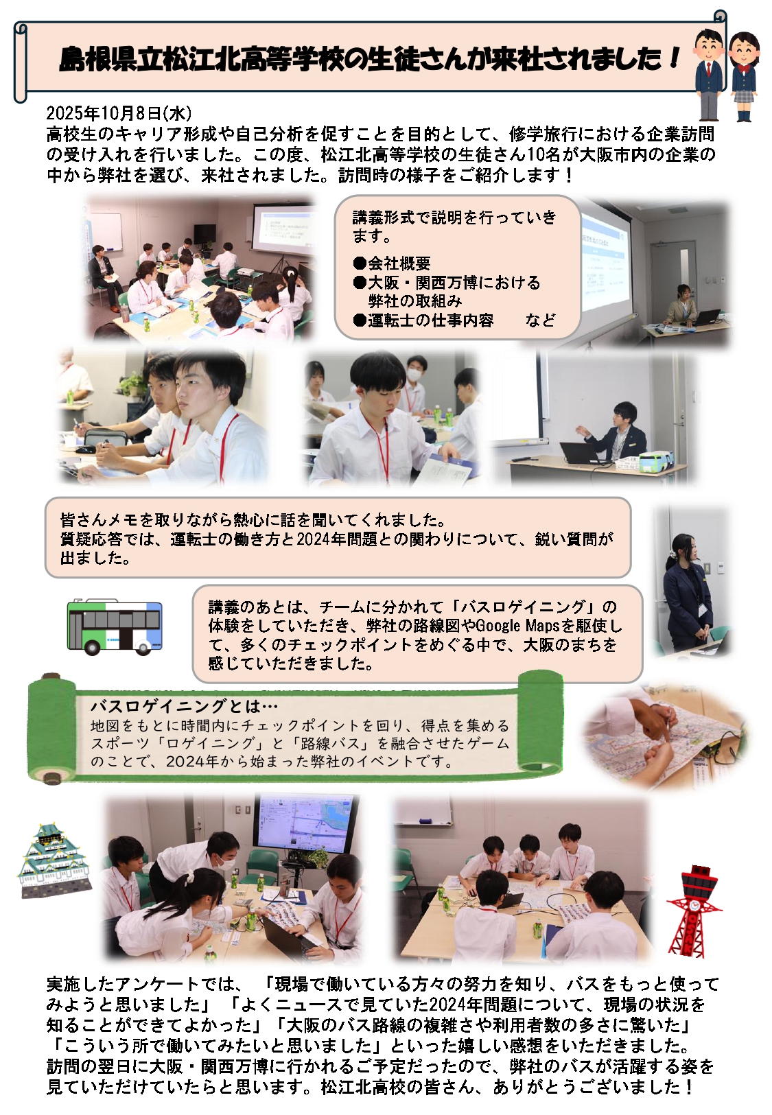 企業訪問の受け入れを行いました(島根県立松江北高等学校)