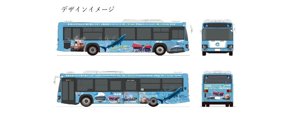 今回、第2弾として、海遊館を始めとする魅力いっぱいのスポットが集まるベイエリアをイメージしたラッピングバスの運行を行います。